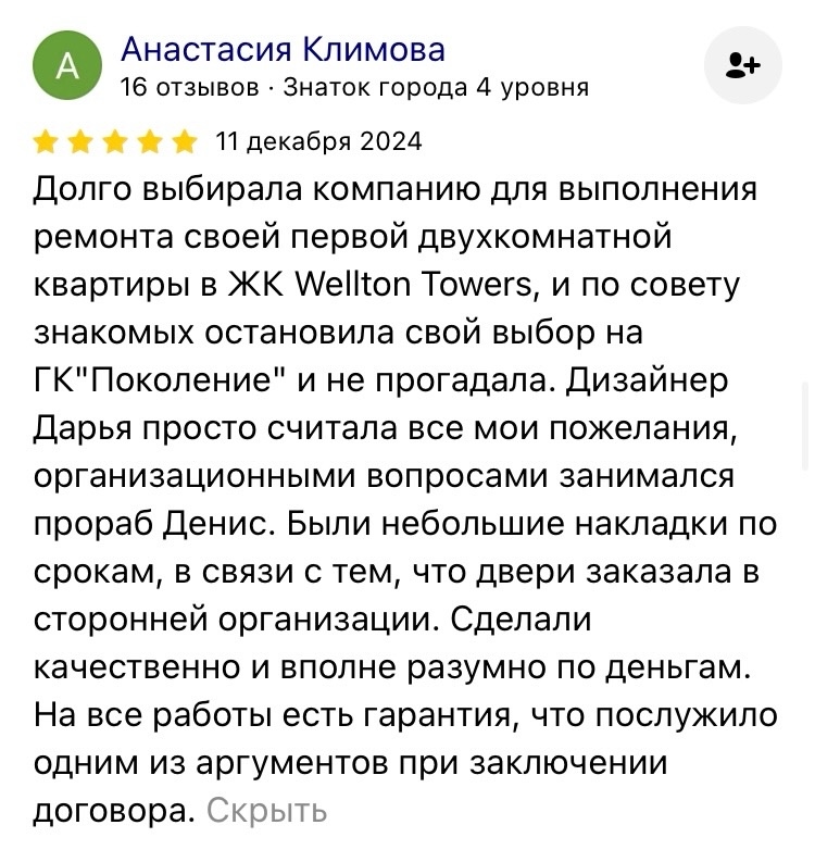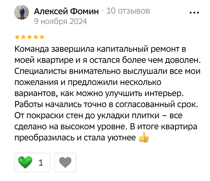 Мы внимательно подходим к подбору команды. Наши сотрудники проходят обязательную аттестацию знание и применение стандартов качества ремонта перед допуском на объект.